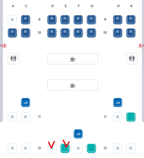 저와 아이는 12D, 12E 를 사전 지정하였고 12G 좌석이 마침 공석이라 더 편하게 갈수 있었습니다.